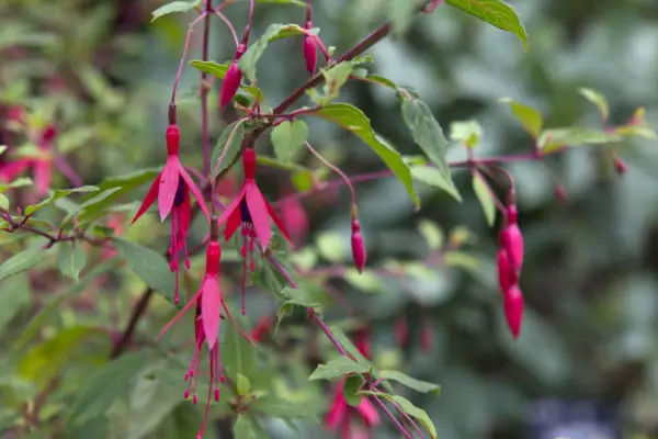 Fuchsia magellanica est un Hardy Fuchsia avec de jolies fleurs rouges avec des sépales longs et effilés. Lorsque d'autres fuchsias ne parviennent pas à survivre à l'hiver, cette robuste espèce sud-américaine peut être invoquée pour conserver un cadre de branches. Les fleurs violettes et rouges sont petites mais portées à profusion tout au long de l'été.