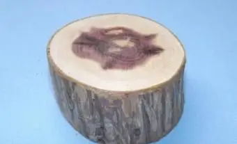 - À l'aide d'une scie à découper, coupez une tranche de 1 1/2' d'épaisseur dans une bûche d'environ 4' de diamètre. Poncez les bords coupés pour lisser les éclats.