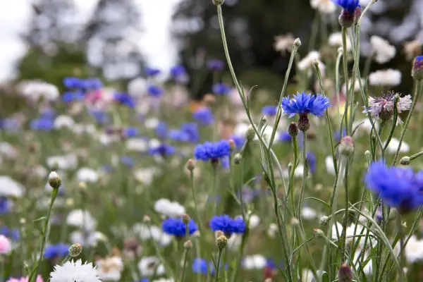 Cornfleur ( Centaurea Cyanus ) est une fleur sauvage annuelle rustique facilement cultivée qui est rapide à pousser et fleurit en été, portant des masses de jolies fleurs à volants sur des tiges élancées. Bien qu'il ne soit pas originaire du Royaume-Uni, il a été introduit par la Méditerranée il y a des milliers d'années et est considéré comme «naturalisé».