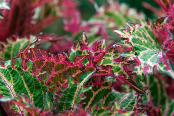 Foliage frappant de rose profond, jaune pâle et vert de Coleus